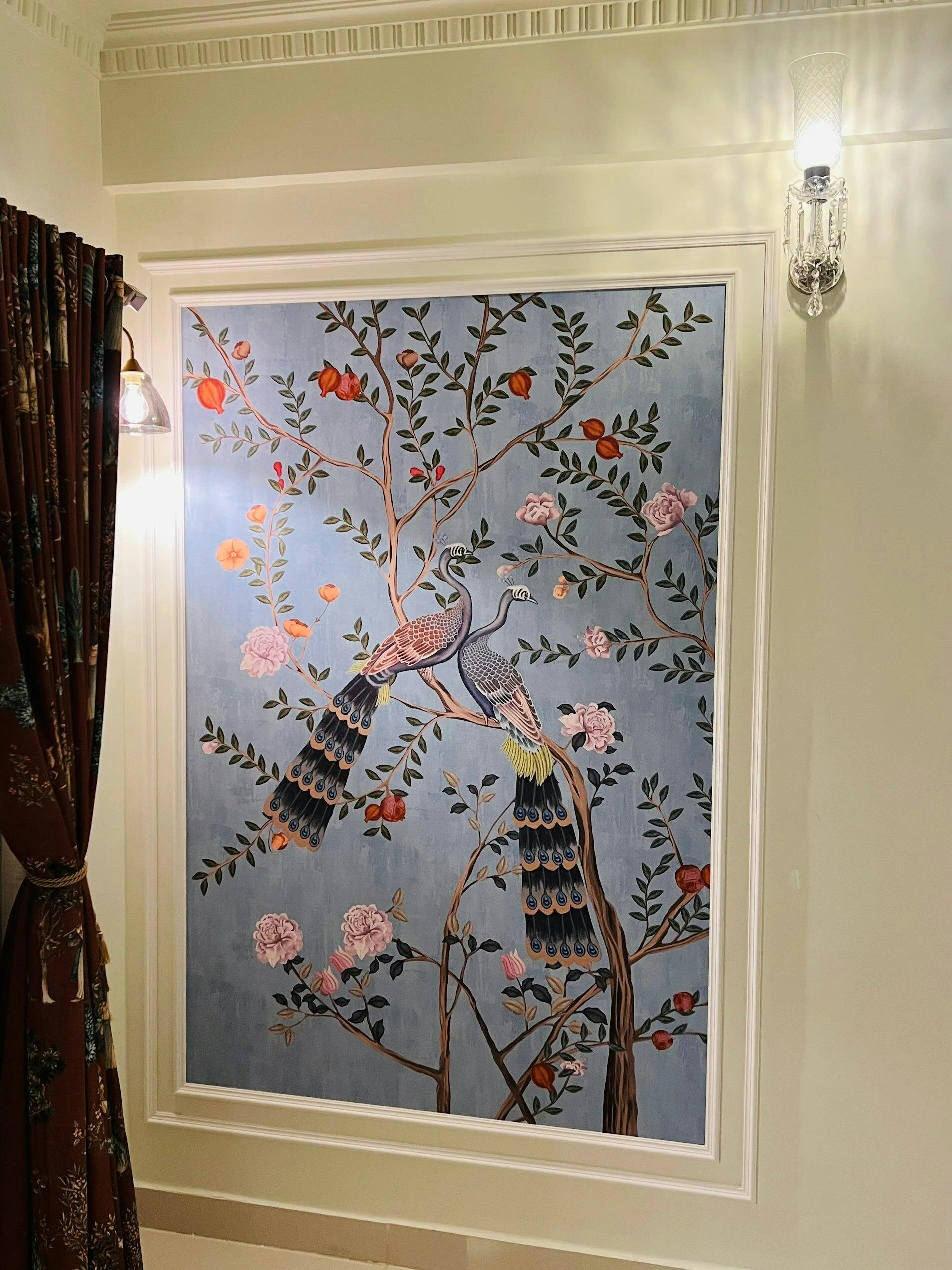 Wallpaper and wall art are very beautiful and good and in the heritage house, the wall has been lifted as soon as they are found